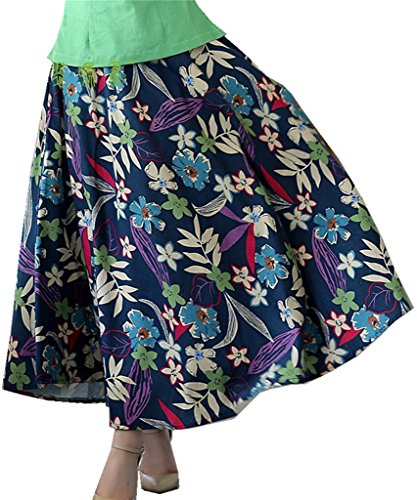 -. Title : (上海物語)Shanghai Story 春夏 棉麻 レディース 花柄 スカート マキシスカート ロングスカート ボヘミアン ポケット付き ウエストゴム 82cm丈