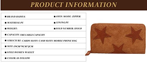 -. Title : Badiya Women's 3 Styles Star Pattern Zip-around Clutch Wallet Long Purse