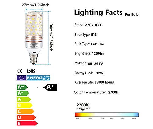 - ★High Brightness--12 Watts LED candelabra bulbs, transparent PC cover, 1200 lumens, 360 degree beam angle, good to replace 100w incandescent bulb.