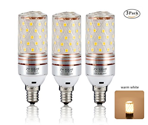 12W LED Corn Bulbs, Candelabra LED Light Bulbs, E12 LED Chandelier Bulbs, Decorative Candle Base E12,2700K Warm White, 1200LM, 100W Incandescent Equivalent ,AC85-265V,Non-dimmable, Pack of 3