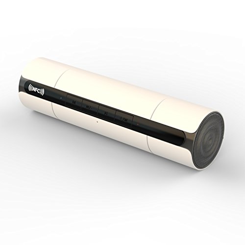 -. Feature : BROAD COMPATABILITY :High efficiency and eco friendly advanced Bluetooth wireless technology ,compatible to all Bluetooth enabled media player devices such as Smartphones, iPhone, iPad, iPod, Mac, Macbook, Android, Tablet, Laptop, Desktop, PC, MP3 players and much more! / Wireless portable bluetooth speaker: Enjoy a High Definition stereo sound with a impressive volume whether you're lounging around the house,or partying,walking out,camping,hiking,biking with included drawstring travel pouch / Rechargeable battery plays up to5-6 hours:Built-in 1000mAH rechargeable lithium battery provides up to5-6hours of playback and can be easily recharged. Please kindly noted that the standard charging power of this speaker should be DC 5V. And actual playtime may vary according to sound volume and audio content / Simple and Fast to Connect: Pairing with the speaker over Bluetooth was fast and easy, and the80 foot wireless range lets you roam about while the music keeps playing. You can also quickly connect to the speaker by tapping your NFC-enabled device to the check-in area to the right of the controls .Compatible with a variety of electronic devices including iPhone, iPad, iPod, Samsung, Google Nexus and other devices( like TV or PC )with AUX IN port. / SUPERIOR STEREO SOUND: Embedded dual powerful acoustic driver and passive radiator with subwoofer provide with loud stereo sound with deep bass