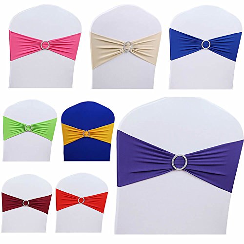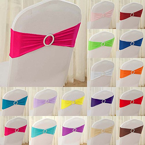 -. Feature : Made of high quality and 100% brand new. / Material:spandx with bukcle / Type: Chair Covers / Features: 1.It will stretch to fit almost any chair 2.They are easy to set up, simply stretch over chair cover 3.They can be used time and time again / Size:15cm*36cm, Buckle Diameter:6.5cm, Fit for wedding,dining,banquet,metting.