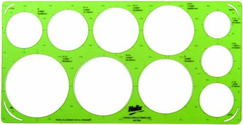 - 10 circles (1 1/2-Inch, 1 3/4-Inch, 1 7/8-Inch, 2-Inch, 2 1/4-Inch, 2 1/2-Inch, 2 3/4-Inch, 3-Inch, 3 1/4-Inch, 3 1/2-Inch) and 4 radii (1/2-Inch, 5/8-Inch, 3/4-Inch, 1-Inch)