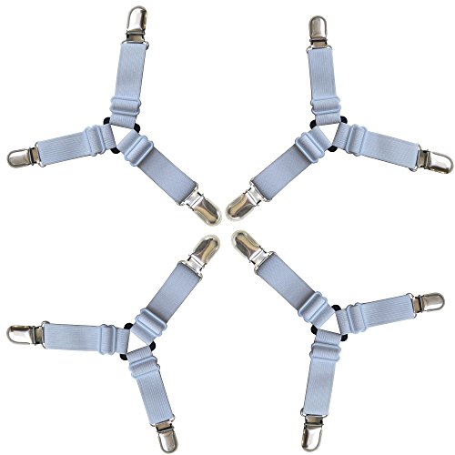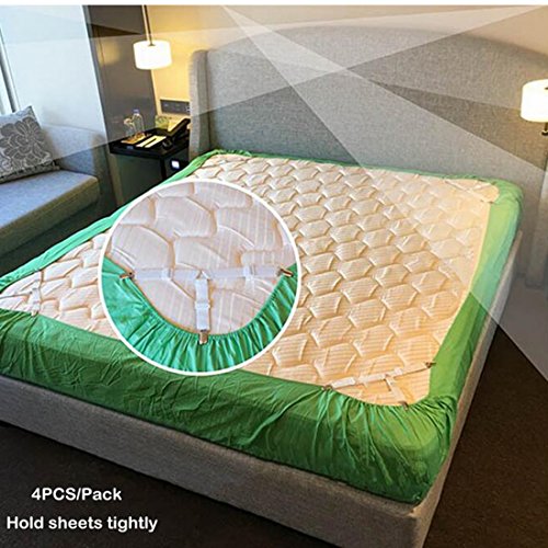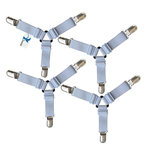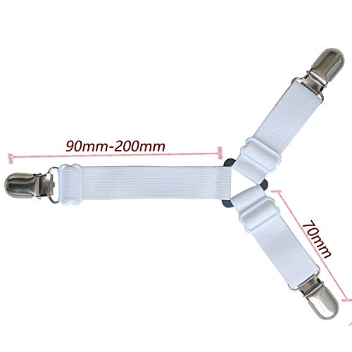 Toweter 4 Pieces A Set ,3-Way Bed Sheet Fasteners Grippers Suspenders,Sheet Mattress Corner Straps,Make Your Life More Tidy(White)