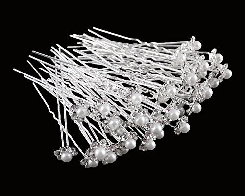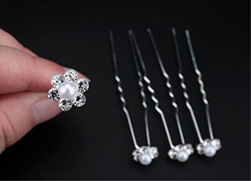 yueton 40pcs Wedding Bridal Pearl Flower Crystal Hair Pins Clips Women Headwear Hair Accessories