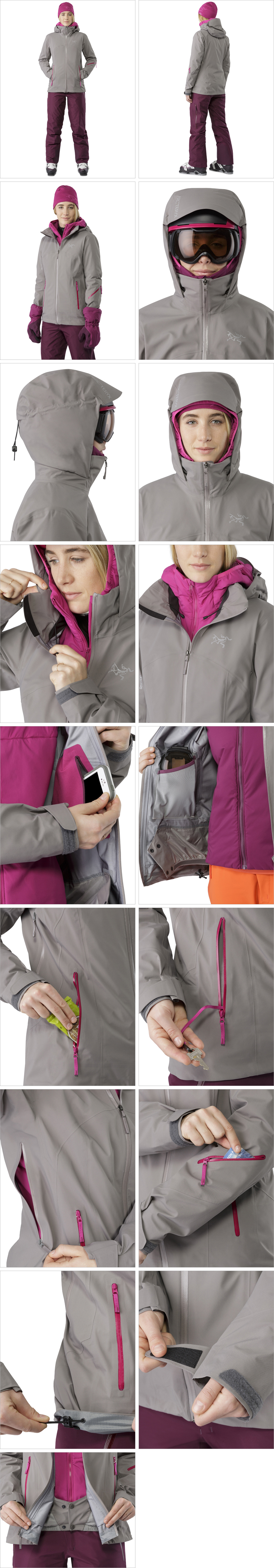 ? N70p 3L GORE*TEX® , GORE® C*KNIT™기술이 접목되어 착용시 몸을 감싸는 느낌이 매우 부드러움. 우수한 통기성으로 몸에서 발생하는 땀과 열기를 효과적으로 배출해줄뿐만 아니라 하드쉘 특유의 소음이 적음 ? 헬멧 위에 착용해도 동작의 불편함이 없는 드롭후드(DropHood™)를 적용하였으며 카라는 보온재가 들어있어 보온력을 높여줌 ? 새로운 RS지퍼슬라이더가 포켓에 사용됨 ? 소매 하단에 지퍼 포켓이 있어 스키패스를 휴대하기 용이하며, 안쪽에 메쉬포켓, 라미네이티드 지퍼 포켓이 있어 소지품과 고글등을 휴대하기 용이 ? 겨드랑이쪽에 있는 사이드 지퍼는 벤틸레이션 기능으로 내부의 땀과 열기를 배출해주어 쾌적함과 체온을 유지해줌 ? 파우더스커트는 신축성을 가지고 있어 몸에 고정되는 효과를 가지기 때문에 움직임이 더욱 편안함 ? 손목에는 Velcro® cuffs 가 적용되어 벌크해지지않도록 해주며 눈, 바람 유입을 차단해줌