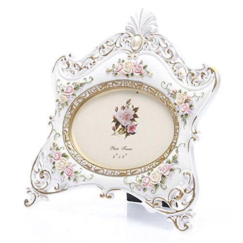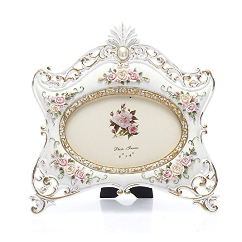 4x6 Inches Victorian Floral White Polyresin Picture Frame