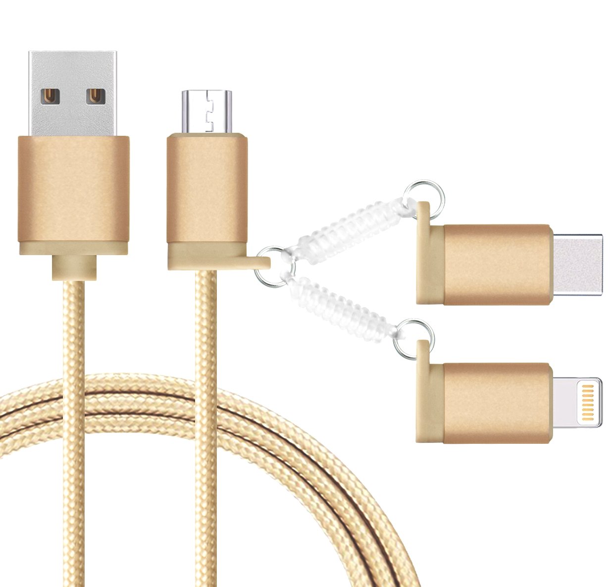 TYPE C / Lightning / micro USB Integrated 3 in 1 High Endurance Nylon Multi Cable