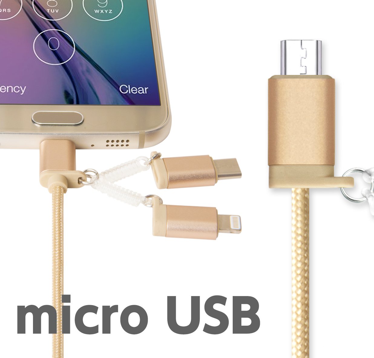 USB A to micro It is a multi type cable with a lightning terminal & TYPE C terminal connector attached to the USB cable.