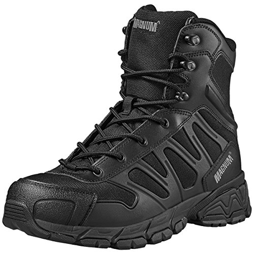 Studio : Magnum Publisher : Magnum Binding : Apparel Product Description With upper made of robust Action Leather with hard wearing breathable 1200 denier Nylon panels, the Magnum Uniforce 8.0 Boots sit above the ankle and feature PVC toe bumper for added protection and slip and oil resistant rubber outsole for improved grip and durability. Moreover, removable and antibacterial contour moulded EVA insole and EVA midsole provide excellent underfoot comfort and cushioning. The boots come with padded foam collar and tongue for added comfort and rustproof metal hardware. Magnum Uniforce 8.0 Boots are robust and comfortable tactical footwear designed especially for extreme conditions. 0