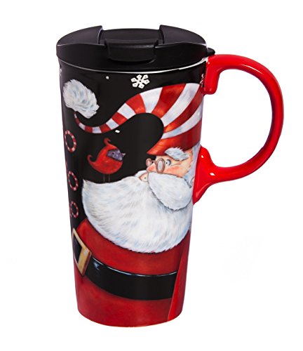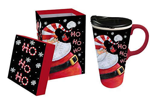 Cypress Home Ho Ho Ho Ceramic Travel Coffee Mug, 17 ounces