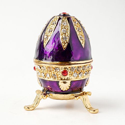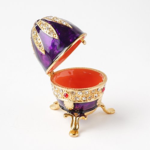 Hand-Painted Mini Faberge Egg with Rich Enamel and Sparkling Rhinestones Jewelry Trinket Box (Purple)