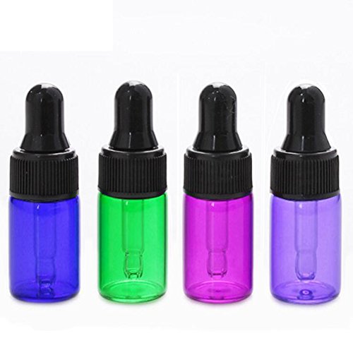 Blue Green Purple Pink Multicolor Glass Dropper Bottles Mini 3ml 15 Pcs Empty Essential Oil Perfume Dropper Bottles Refillable Makeup Glass Dropper...