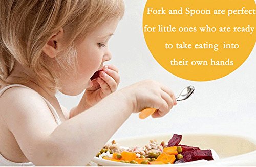Stainless steel heads,Sturdy stainless steel for durability. Round design, polished smooth, do not hurt the baby tender mouth .and deep spoon shape for easier scooping of food and liquids.Multifunction Fork ,make the baby love to eat.