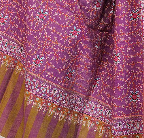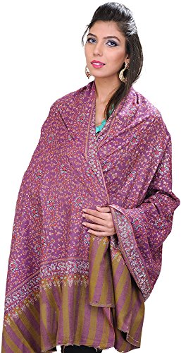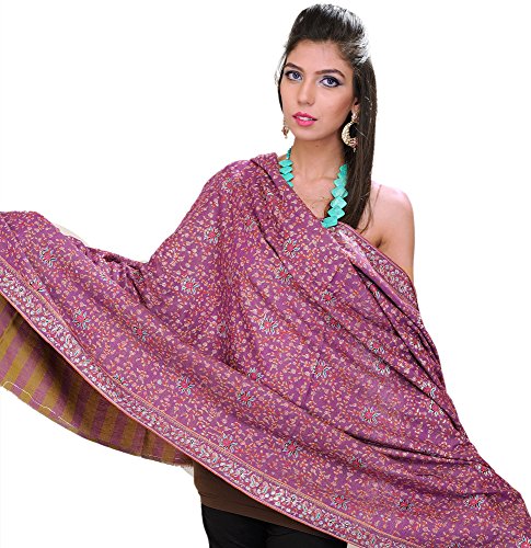(Exotic India)/Accessories/Scarves/DIRECT FROM USA/Exotic India Wood-Violet Pure Pashmina Shawl from Kashmir with Sozni Em - Purple