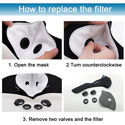 - EASY TO CLEAN AND REPLACEABLE - This bike mask can be washed when they get dirty. The bike mask filters can be replaced easily by yourself. We recommend that the filters should be replaced every 3-month.