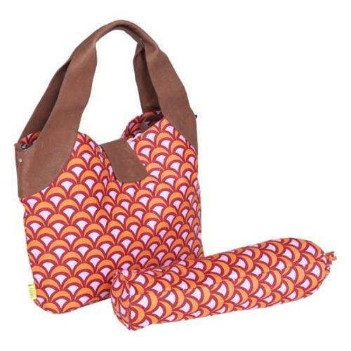 Product Description 1 Piece Tangerine Orange Large Floral Print Diaper Bag For Babies, Baby Nursery Tote Backpack Carrier Geometric Flowers Pattern Design Roomy Changing Pad Zippered Storage Shoulder Strap, Cotton 0