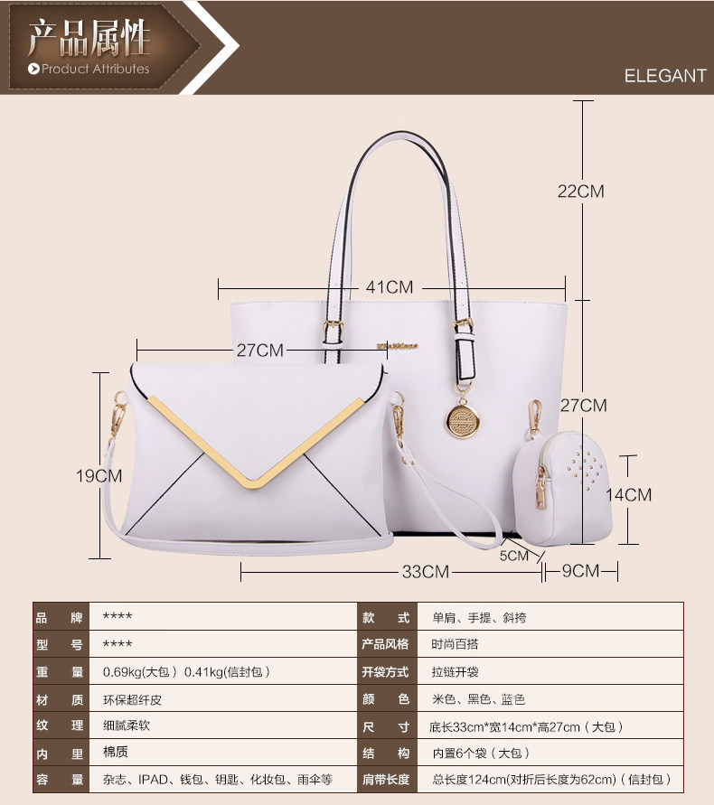 D:Spring new European and American fashion handbags PIP package three-piece handbag shoulder bag Messenger bag mother package