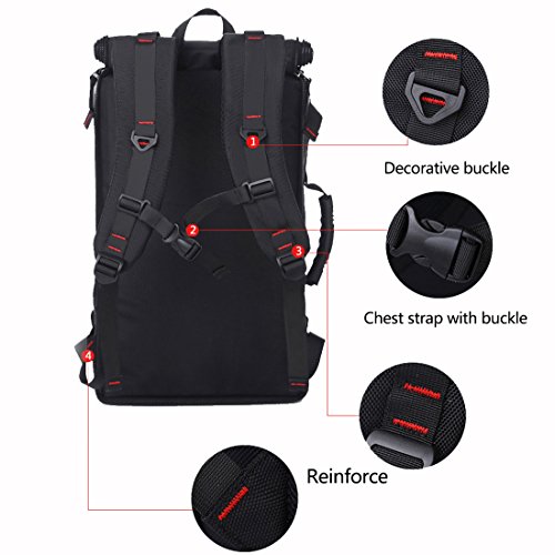 Comfortable: Breathable meshed shoulder straps with plentiful sponge padding to help relieve the stress from your shoulders. The chest strap with buckle helps you lock your backpack in place securely.