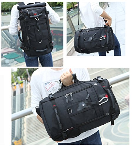Multipurpose: Three ways to carry. It can use as duffle/handbag/suitcase/brief case when travelling. The double straps are in a hidden compartment to make this bag become a backpack/ knapsack/ daypack. A detachable shoulder strap can easily turn the backpack into a messenger bag and shoulder bag.