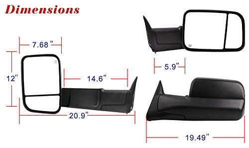 YITAMOTOR Towing Mirrors for 98-01 Dodge Ram 1500 98-02 Dodge Ram 2500 3500 Flip Up Power Heated with Support Bracket Pair Set Side Mirrors