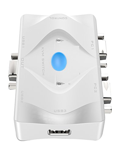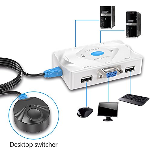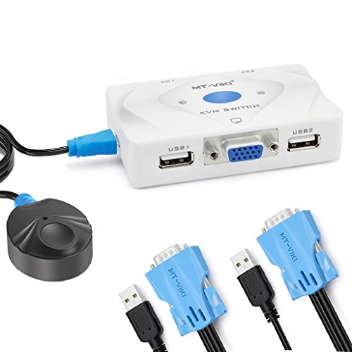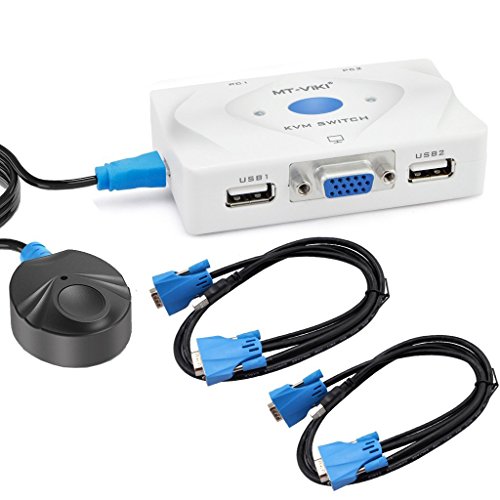 E-SDS 2-Port VGA USB KVM Switch Box with 2 KVM Cables Support Wireless USB Keyboard and Mouse ,Pushbutton ,Hot-key Switch and Desk-top Controller