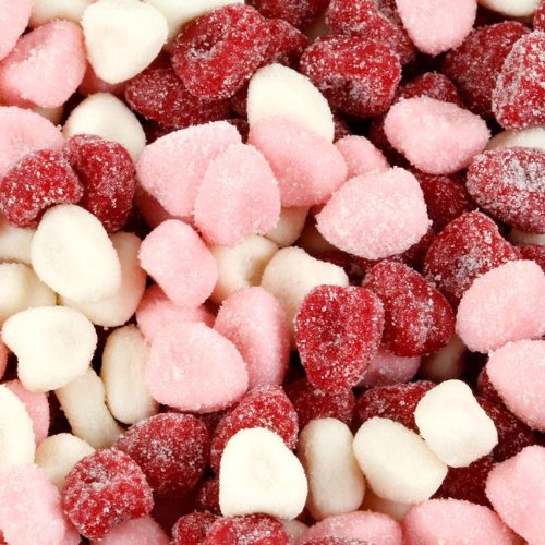 -. Feature : Grape Flavored Red, Pink & White Heart Shaped Jelly Candy / Approx. Dimensions: 1/2" x 3/8" / Item Contains: Approx. 700 pcs. per lb. / Product of the USA / OK Certified Kosher