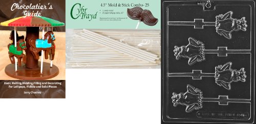 Cybrtrayd 'Frog Prince Lolly' Animal Chocolate Candy Mold with 25 4.5-Inch Lollipop Sticks and Chocolatier's Guide