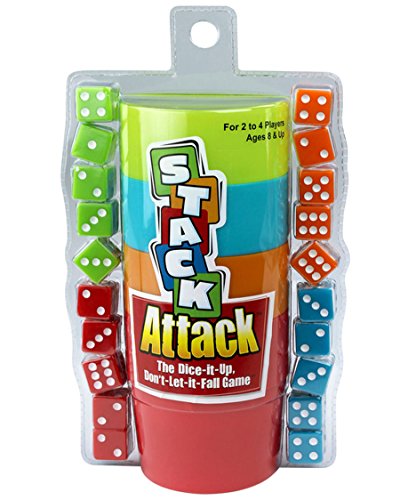 Studio : EDU-MEDU-TOYS Publisher : EDU-MEDU-TOYS Product Description You'll need a steady hand to attack this stack! Roll and play your dice on the center Quake Plate! You can build up the tower using neighboring numbers only (ie: if there is a 2 dot die as the last played, you can add a 1 dot, or a 3). So which direction should you go? That's part of the strategy! You'll want to play as many dice as you can... but not if it means the tower will topple! Each player gets 5 dice and a dice rolling cup (everything is color coordinated, so you have a red player, orange play, green player, blue player). Knock it over, you get no points, whereas each other player receives one point for each die they had in the fallen tower. Get all your dice onto the tower before it topples? You get points and no one else does! Easy to understand with minor strategy involved, this game is a fun test of hand-eye coordination, dexterity, and meticulous, ginger dice placement! Start stacking! Stack Attack A dice stacking, tower building game Encourages hand-eye coordination, meticulous care, ginger dexterity Stack them up, don't knock them down! Stack the dice in numerical order, rising or descending Earn points for each die played if the tower falls during another player's turn Earn points for placing all of your dice before the fall Earn no points for knocking it over Dice and cups are color coordinated (red, orange, green, blue) Includes 20 dice (5 of each color), 4 dice cups, quake plate Rules included 0