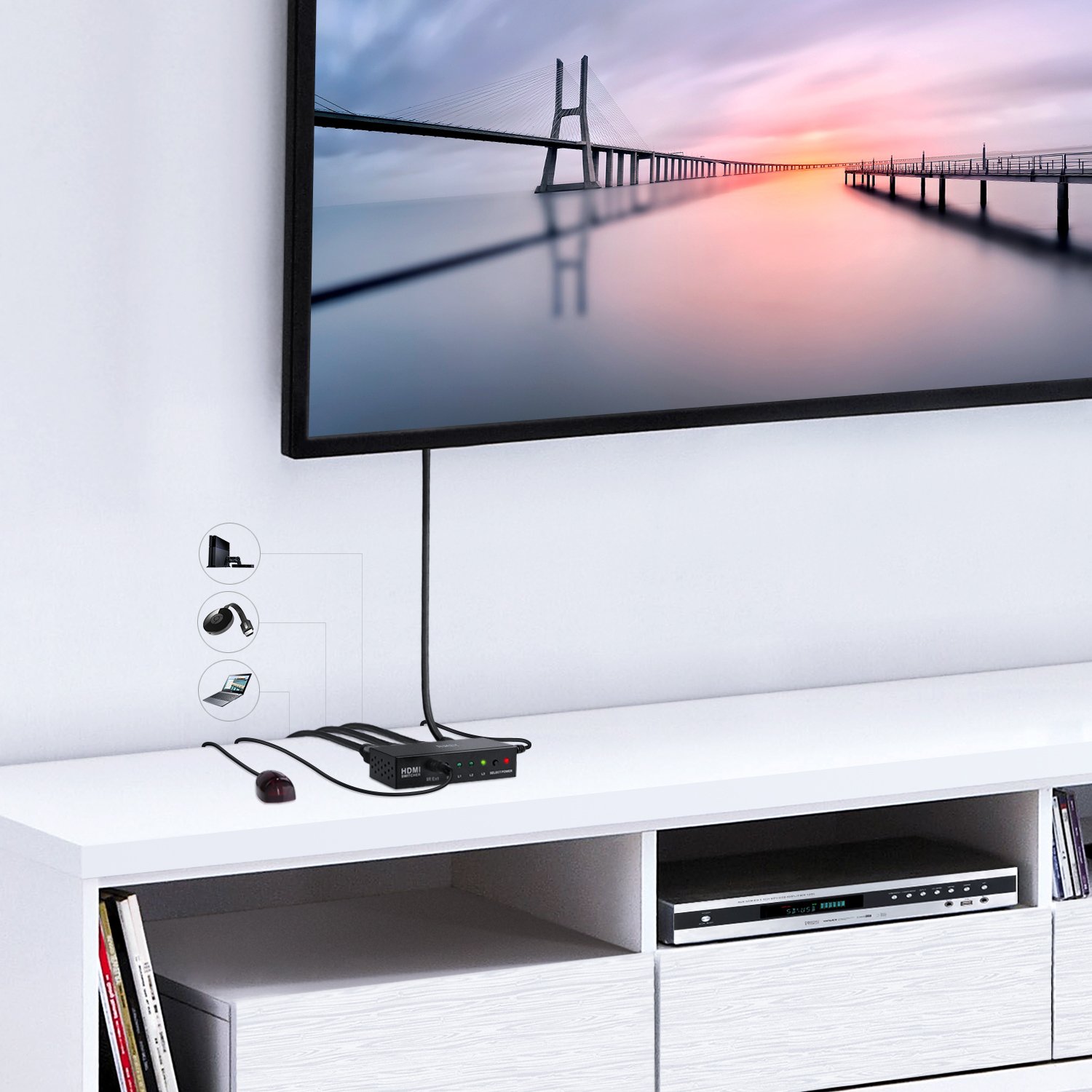 It is widely used, for example, it is a multifunctional HDMI switcher indispensable for scenes such as home theater, multimedia, corporate video conference, sales promotion video of sales floor, educational setting, shop front advertisement and advertisement.