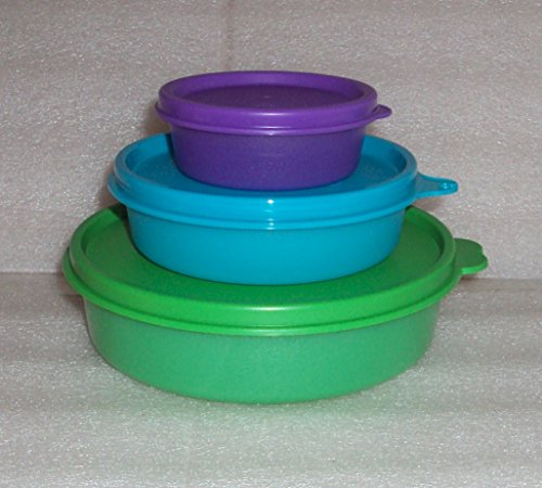 Product DescriptionTupperware Set of 3 Small Bowls Medium Little Wonders Half Snack Cup. 12 oz, 6 oz, and 2 oz capacity. Green, Blue, Purple0