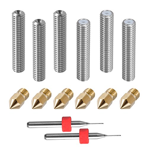 EAONE 6pcs 30MM Length Extruder 1.75MM Tube and 6pcs 0.4MM Brass Extruder Nozzle Print Heads for MK8 Makerbot Reprap 3D Printers (Bonus: 2pcs cleaning drill Bits)