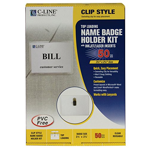 C-Line Clip Style Name Badge Holders with Inserts, 3.5 x 2.25 Inches, 50 per Box (95523)