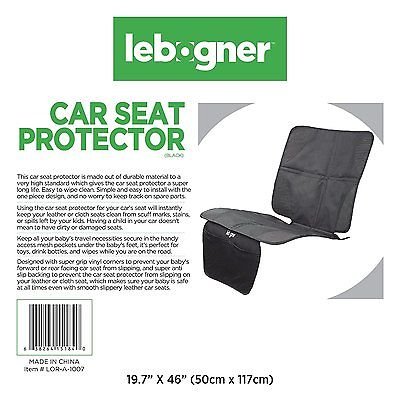 -. Binding : Baby Product -. Brand : Everything Jingle Bell -. Color : Black -. EAN : 0721227627176 -. Feature : Customized design fits on the seat of Most Vehicles. / Designed with super grip vinyl corners to prevent your baby's forward or rear facing car seat from slipping. / Designed to stay permanently secure in one position with the super anti slip backing. / 2 Handy access mesh pockets under the baby's feet for kids travel necessities. / Stylish black design that will suit any car interior. -. IsAdultProduct : 0 -. Label : Does Not Apply -. Manufacturer : Does Not Apply -. ProductGroup : Baby Product -. ProductTypeName : BABY_PRODUCT -. Publisher : Does Not Apply -. Studio : Does Not Apply -. Title : Lebogner Car Seat Protector, Keep Nice And Clean Under Your Baby's Infant Seat. -. UPC : 721227627176