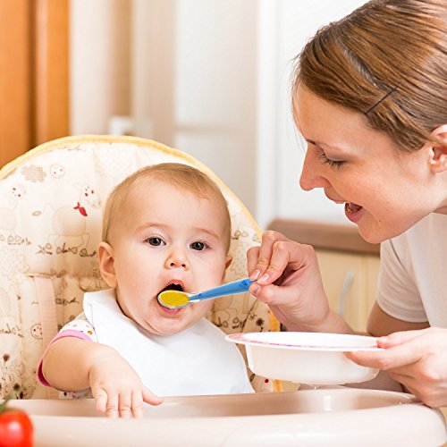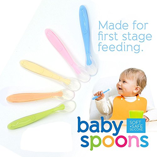 -. Feature : SOFT AND SAFE MATERIAL: Made of high quality, food-grade silicone, dishwasher safe. Our spoons are completely free from BPA, PVC, lead, phthalates and any toxic materials. You want the best for your baby and these are some of the safest utensils on the market. Soft spoon is perfect for babies who eat solid foods for the first time and it won't hurt their gums. / SPECIALLY DESIGNED FOR BABIES: Our spoon is created for both babies who have just start trying solids and their caring parents. They are fully optimized so that your baby can effectively get used to solids. Five vibrant spoon colors enhances your baby's appetite and every meal time becomes a special event which your baby will always look forward to. / EASY TO USE FOR PARENTS - Some baby spoons out there in the market today lack a bit of length, which makes it difficult for parents to feed their babies. Our spoons are ergonomically improved to sufficiently be able to extend food into your child's mouth with minimum effort for the parents. No matter how resistant your baby may be, this spoon will ensure that they are fed properly and as hassle-free as possible. / PERFECT SIZE FOR BABY AND MOMMY: Long enough nonslip ergonomically designed handles will make feeding easy on the wrist. Perfectly designed shallow spoon will give the right amount of food and is a perfect size for baby's little mouth / NEEDLESS TO MENTION SATISFACTION GUARANTEE: Highest quality material used to ensure the best quality for your baby. We guaranteed the best quality every time. Built to last a very long time without breaking, bending, cracking, or tearing. We take P.R.Ide in providing the product which we believe in.