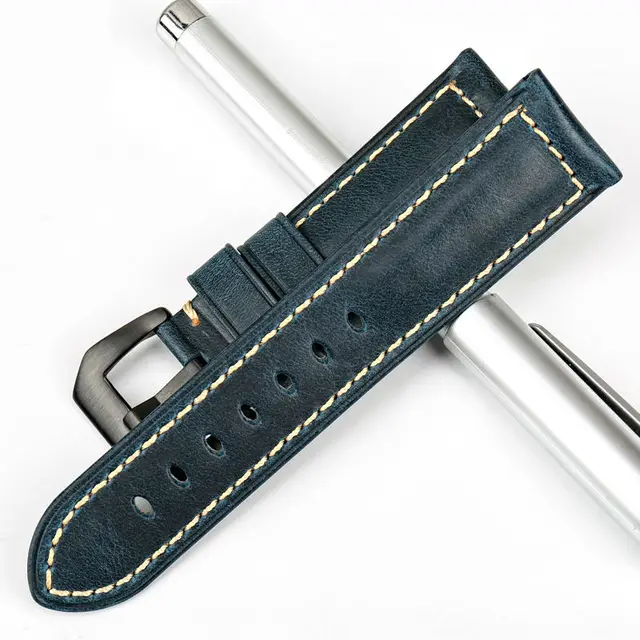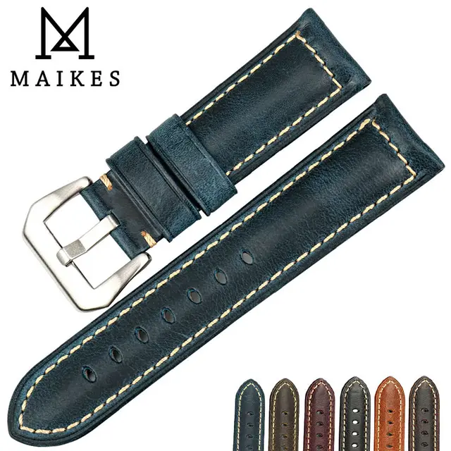 | [해외] MAIKES 22 미리메터 24 미리메터 26 미리메터 손목 소 가죽 시계 스트랩 빈티지 블루 시계 팔찌 시계 액세서리 화석 시계 밴드 |