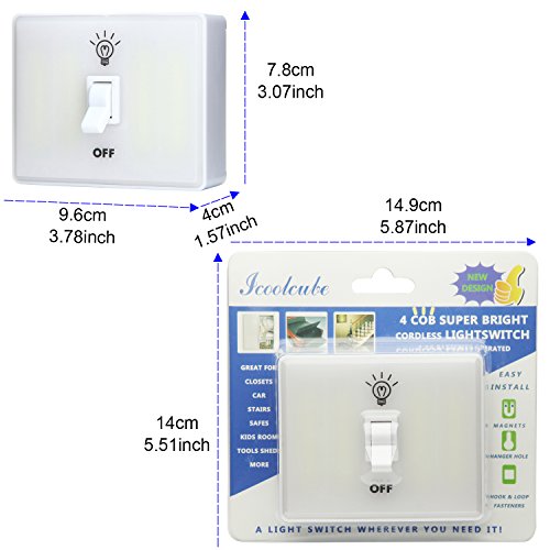 Icoolcube LS0017 White Led Night Light Switch Wireless Battery Powered for Kids' Room, Closet, Wardrobe, Garage, Tent Outdoor, RV