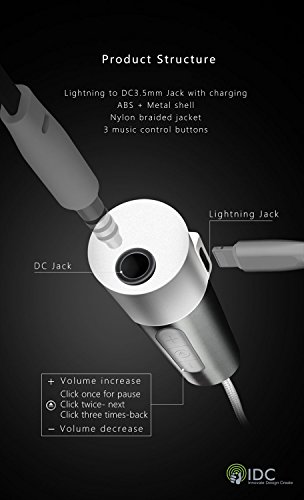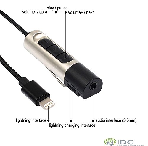 IDC™ Lightning to 3.5mm Headphone Jack Adapter for iPhone 7/7 Plus. iPhone 7 Lightning Port to 3.5mm Female Audio Jack Headphone Cable Adapter 2 in 1. CHARGE & LISTEN at the same time