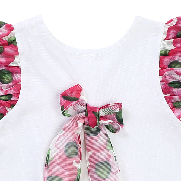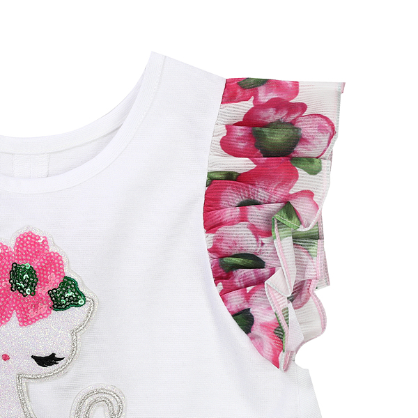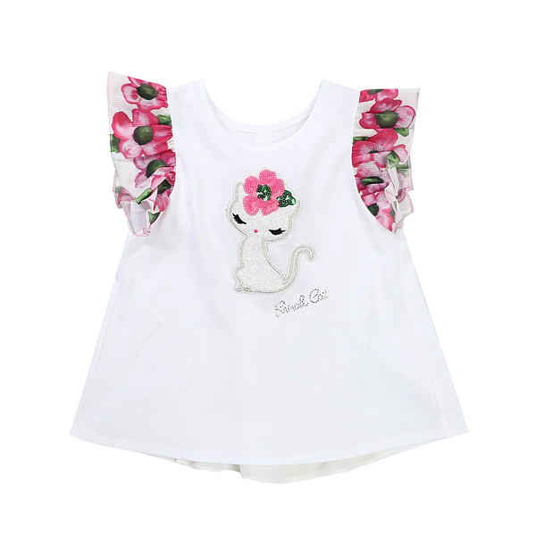 소매부분이 꽃프린트로 되어있는 롱티셔츠입니다.