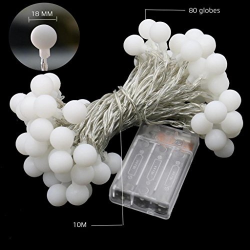 AMARS Battery Powered Globe String Lights 33 Feet 80LEDs Indoor Outdoor Decor String Lights for Bedroom, Garden, Patio, Party, Celebration (Warm White)