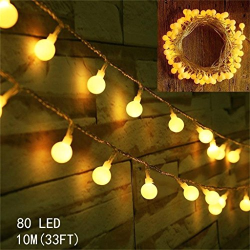 - Length: 10m/33ft; Globe quantity: 80pcs. Work modes: flash/Steady ON.Globes are not friable because of they are made of high quality plastic materials, neat and very comfortable touching feeling.
