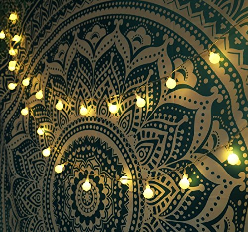 - This battery powered globe LED string light can be used indoor and outdoor without any trailing cables or an external power supply and charging plug. The diameter of each globe ball is 0.7 inch.Ther are 4.92 inch long between each ball.