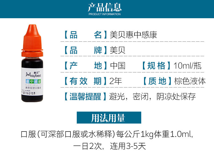 Oral (oral or diluted with water) per kilogram of 1kg weight 1ml, 2 times a day, used in conjunction with 3-5 days