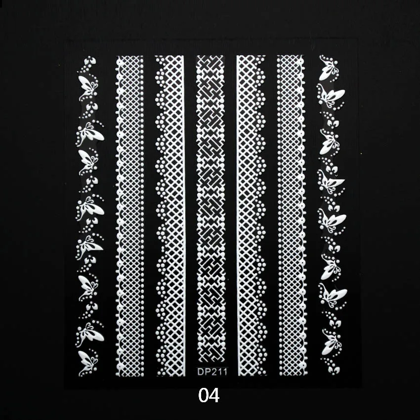 7: Leaf Lace Nail Art Decals White Flowers Lace Nail Art Stickers