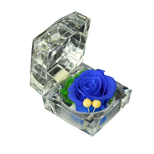 Precious Preserved Fresh Rose in Crystal Ring Box - DEFAITH® Perfect Handmade Gift for Anniversory, Birthday, Christmas, Mother's Day,Wedding,Valentine Day (Navy Blue)