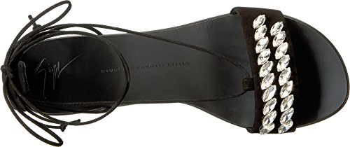 Binding : Apparel Product Description Style and grace will be your in these Giuseppe Zanotti™ sandals. Leather upper. Wrap around slender lace ankle ties for closure. Slip-on construction. Open toe silhouette with single leather strap decorated with sparkling diamonds connected to laces up through vamp. Leather lining. Lightly padded leather footbed with embossed logo. Wrapped square heel. Durable leather outsole. Made in Italy. This item may ship with an attached security tag. Merchandise returned without the original security tag attached or a damaged tag may not qualify for a refund. Measurements: Heel Height: 2 in Weight: 9 oz Product measurements were taken using size 39 (US Women's 9), width M. Please note that measurements may vary by size. 0