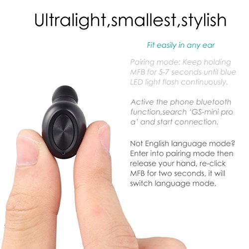 - 【Ultra Lightweight Bluetooth Headset】: Ultra lightweight wireless headset, mini invisible design with one-button control, smaller than Q26 bluetooth earpiece, the bluetooth car headphone fits in ear perfectly until it goes off and leaves one ear free to the environment, providing safety.
