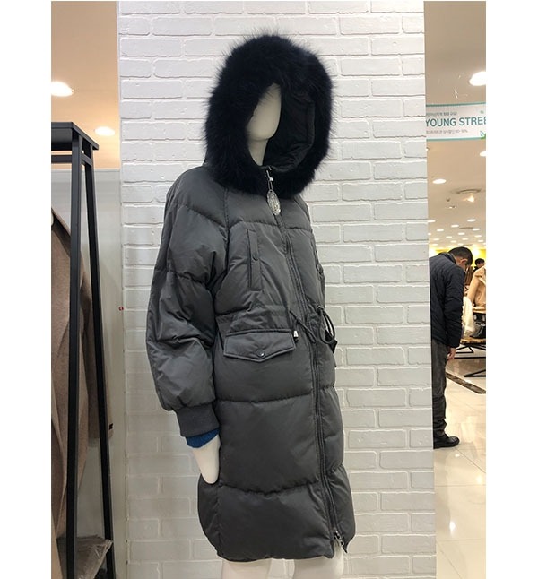 MISS KANT 모다 아울렛 천안 아산점 1층뉴 스트링 집업 패딩 KNDWIB02허리 조절이 가능한 덕다운 패딩 입니다.후드에는 단추로 탈부착이 됩니다.같이 입은 상품소울 스판 SW 원피스 KOOPIC01