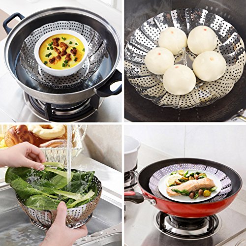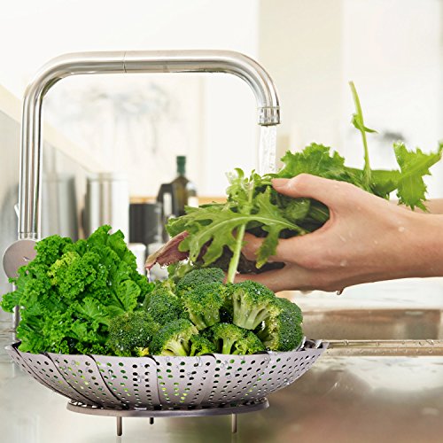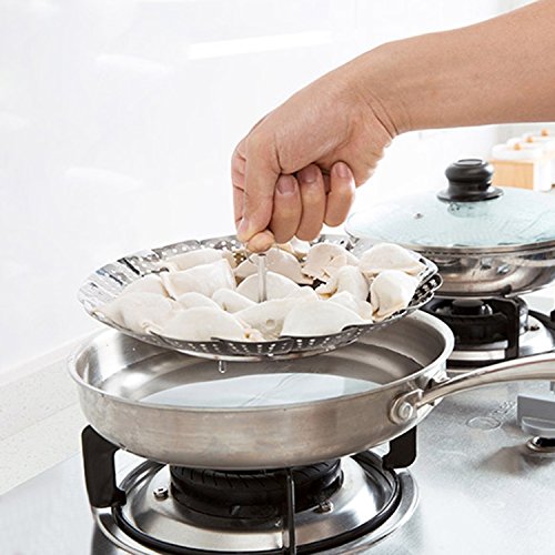 EASY TO USE - The vegetable steam basket measures 9 inches and can be used for steaming vegetables, fish, meats, eggs, pasta, and fruits, most types of seafood, dumplings and baby food too. Multi-use kitchen tool for your stovetop in a saucepan or wok