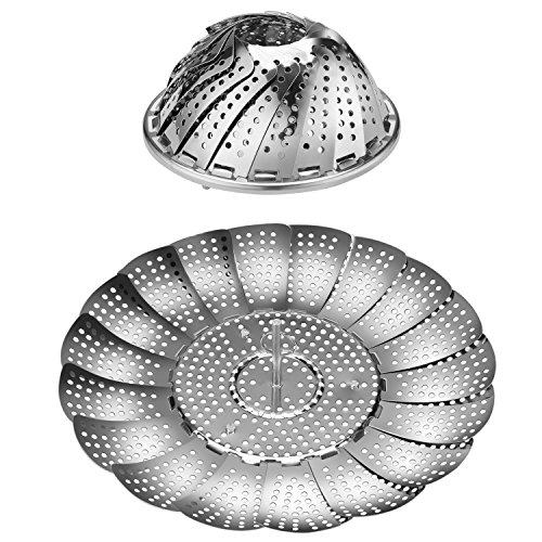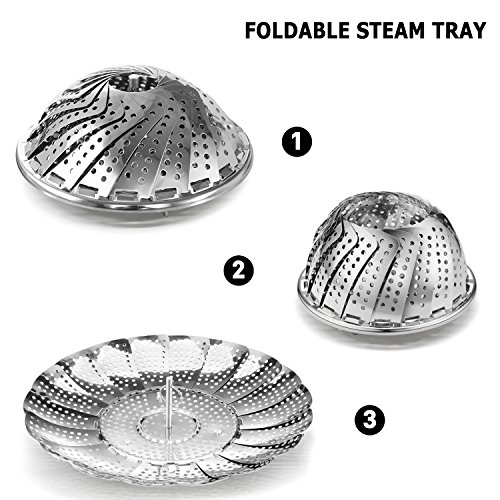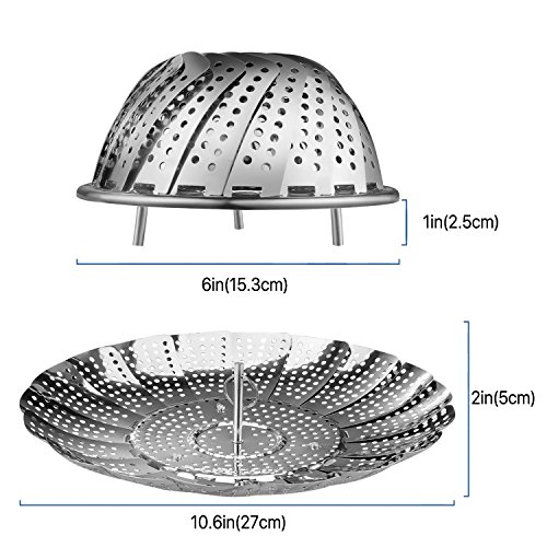 - 1 x Stainless Steel Vegetable Steamer Basket - Expandable Round Folding Collapsible Tray Kitchen Tool Fits Instant Pot Electric Pressure Cooker for Cooking Foods Pasta Seafood 6" Adjust to 10.5"